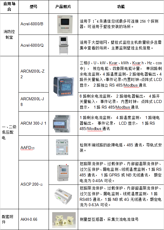 Acre1-6000電氣火災監控系統,是根據國家現行規范標準由安科瑞電氣股份有限公司研發的全數字化獨立運行的系統,已通過國家消防電子產品質量監督檢驗中心的消防電子產品試驗認證,并且均通過嚴格的EMC電磁兼容試驗,保證了該系列產品在低壓配電系統中的安全正常運行,現均已批量生產并在全國得到廣泛地應用。該系統通過對剩余電流、過電流、過電壓、溫度和故障電弧等信號的采集與監視,實現對電氣火災的早期預防和報警,當必要時還能聯動切除被檢測到剩余電流、溫度和故障電弧等超標的配電回路;并根據用戶的需求,還可以滿足與AcreIEMS企業微電網管理云平臺或火災自動報警系統等進行數據交換和共享。