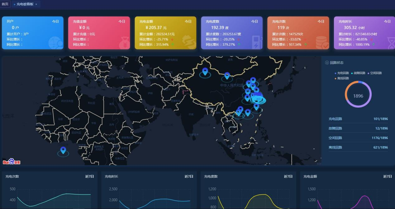 通過(guò)物聯(lián)網(wǎng)技術(shù),對(duì)接入系統(tǒng)的充電樁站點(diǎn)和各個(gè)充電樁進(jìn)行不間斷地?cái)?shù)據(jù)采集和監(jiān)控,同時(shí)對(duì)各類故障如充電機(jī)過(guò)溫保護(hù)、充電機(jī)輸入輸出過(guò)壓、欠壓、絕緣檢測(cè)故障等一系列故障進(jìn)行預(yù)警。云平臺(tái)包含了充電收費(fèi)和充電樁運(yùn)營(yíng)的所有功能,包括城市級(jí)大屏、交易管理、財(cái)務(wù)管理、變壓器監(jiān)控、運(yùn)營(yíng)分析、基礎(chǔ)數(shù)據(jù)管理等功能。
