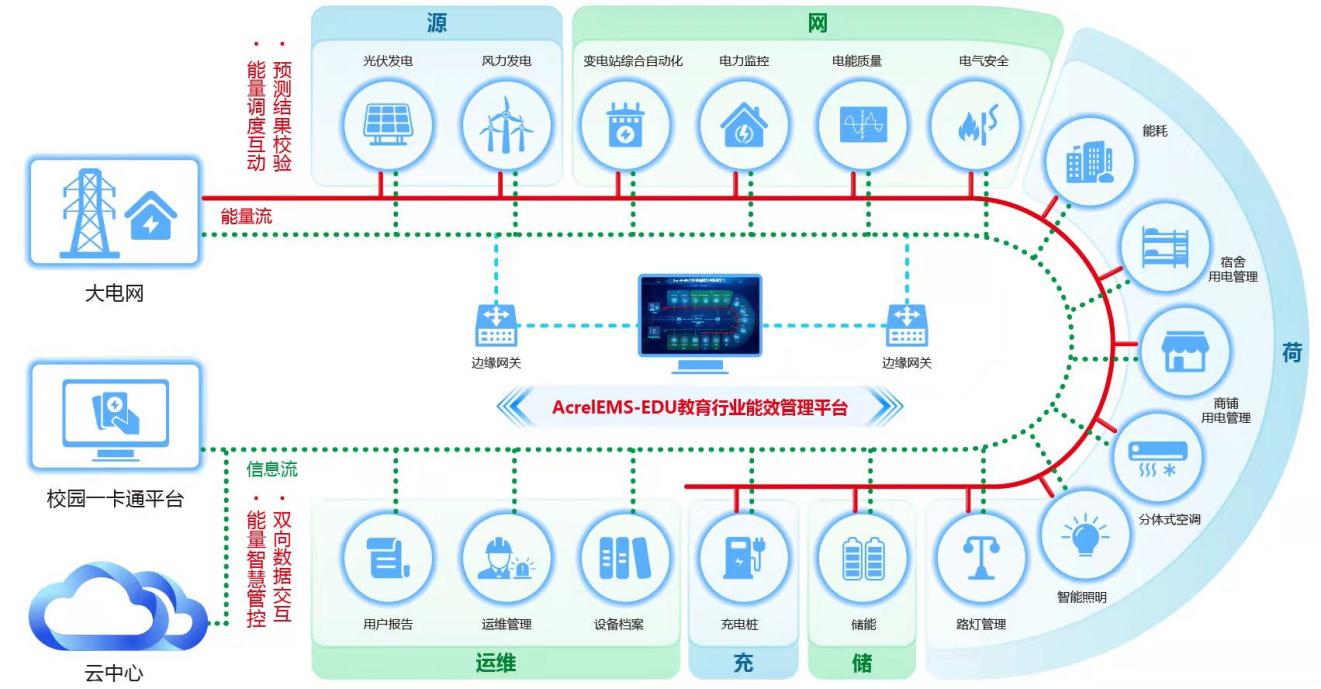AcrelEMS-EDU校園綜合能效管理解決方案針對校園能源統(tǒng)計(jì)、后勤計(jì)費(fèi)管理、校園運(yùn)維管理等提供高校的信息化管理平臺。從“源、網(wǎng)、荷、儲、充”多個角度解析高校當(dāng)下及未來的用能問題及用能需求,在統(tǒng)一的需求下“實(shí)現(xiàn)能源互補(bǔ)、信息互通”等管理模式。助力學(xué)校管理智能化、數(shù)字化、綜合化,實(shí)現(xiàn)節(jié)能校園、綠色校園、低碳校園。