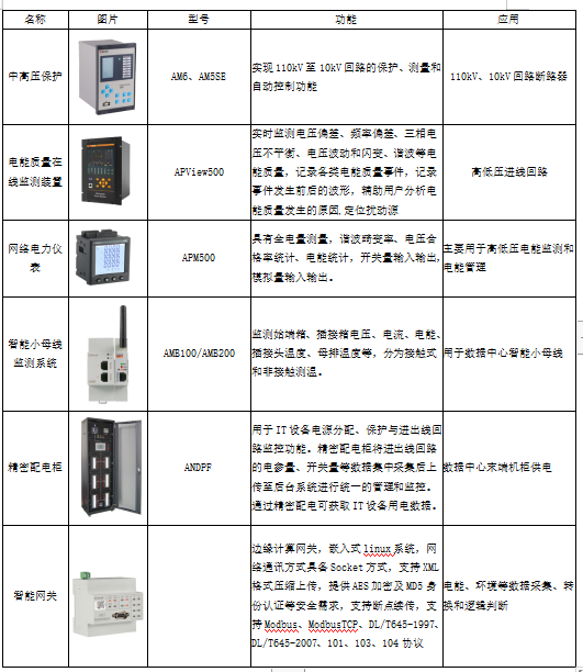 安科瑞針對數據中心的能效產品除了能效管理系統和上述電能質量治理裝置、蓄電池監測、智能照明控制和分布式光伏外,還包括高低壓配電綜合保護和監測產品、電能質量在線監測裝置(A類)、智能小母線系統、精密配電柜、電氣消防類解決方案等。