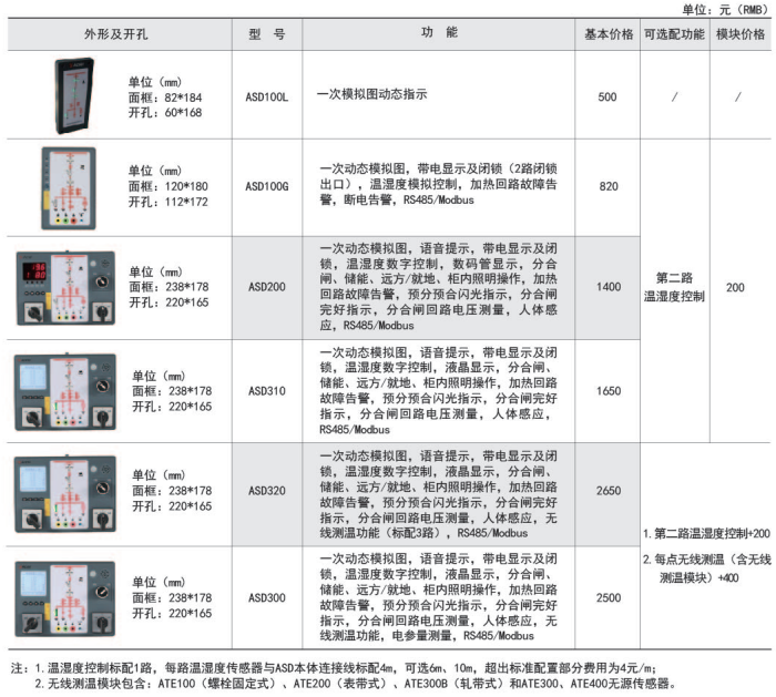 ASD系列開關(guān)柜綜合測控裝置具有一次回路模擬圖及開關(guān)狀態(tài)指示、高壓帶電顯示、自動溫濕度控制、人體感應(yīng)自動照明、語音提示、電參數(shù)測量及RS485通訊接口等功能,集操作、顯示于一體,直觀地體現(xiàn)柜內(nèi)元件的工作狀態(tài)及工作環(huán)境。
