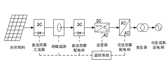 太陽能光伏電站主要由光伏電池陣列、匯流箱、低壓直流柜、逆變柜、交流低壓柜、升壓變壓器等組成,最后產(chǎn)生的交流直接并入電網(wǎng)。針對每個環(huán)節(jié)電力參數(shù)檢測的需要,安科瑞推出了AGF系列光伏匯流采集裝置、ACR10R系列防逆流監(jiān)控裝置、APQM系列電能質(zhì)量在線監(jiān)測裝置、匯流箱及并網(wǎng)柜等產(chǎn)品,分別應用于匯流箱、直流防雷柜及交流柜中,并通過Acrel-2000 V8.0光伏發(fā)電監(jiān)測系統(tǒng)實現(xiàn)后臺集中監(jiān)控。