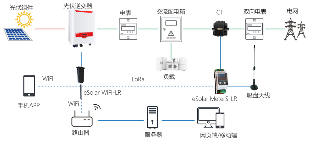 防逆流監(jiān)測裝置原理:在并網(wǎng)點安裝防逆流電表或者電流傳感器,當檢測到有電流流向電網(wǎng)時,通過485通訊給逆變器一個信號,逆變器降低輸出功率,直至反向輸出電流為零,從而實現(xiàn)防逆流功能。根據(jù)系統(tǒng)電壓等級不同,光伏系統(tǒng)可分為單相防逆流系統(tǒng)和三相防逆流系統(tǒng)。