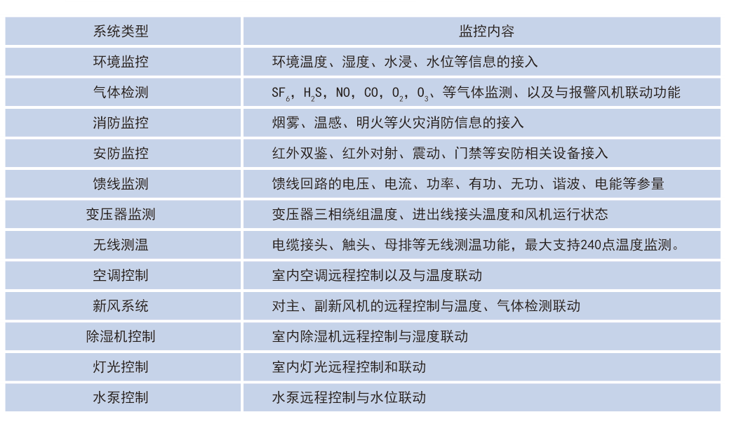 Acrel-2000E配電室綜合監(jiān)控系統(tǒng),可實(shí)現(xiàn)開關(guān)柜運(yùn)行監(jiān)控、高壓開關(guān)柜帶電顯示、電流電壓等負(fù)載運(yùn)行監(jiān)測(cè)、母線及電纜測(cè)溫監(jiān)測(cè)、環(huán)境溫濕度監(jiān)測(cè)、有害氣體監(jiān)測(cè)、安防監(jiān)控,可對(duì)燈光、風(fēng)機(jī)、除濕機(jī)、空調(diào)控制等設(shè)備進(jìn)行聯(lián)動(dòng)控制。實(shí)現(xiàn)動(dòng)力環(huán)境各數(shù)據(jù)的檢測(cè)與設(shè)備控制,優(yōu)化動(dòng)力環(huán)境,避免運(yùn)行環(huán)境的失控導(dǎo)致配電設(shè)備運(yùn)行故障,保證維護(hù)人員安全,延長(zhǎng)設(shè)備使用壽命,實(shí)現(xiàn)配電動(dòng)力環(huán)境的分布式遠(yuǎn)程管理。