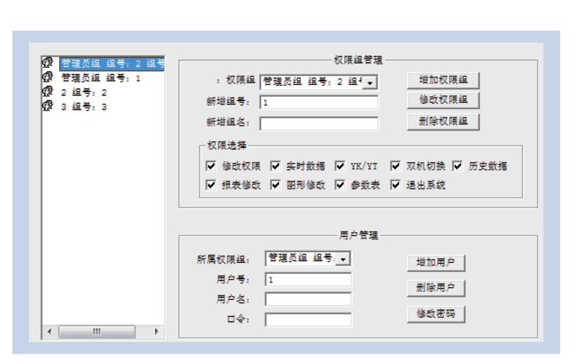 為保障系統(tǒng)安全穩(wěn)定運(yùn)行,設(shè)置了用戶權(quán)限管理功能。通過(guò)用戶權(quán)限管理能夠防止未經(jīng)授權(quán)的操作(如遙控的操作,數(shù)據(jù)庫(kù)修改等)。可以定義不同級(jí)別用戶的登錄名、密碼及操作權(quán)限,為系統(tǒng)運(yùn)行維護(hù)、管理提供可靠的安全保障。
